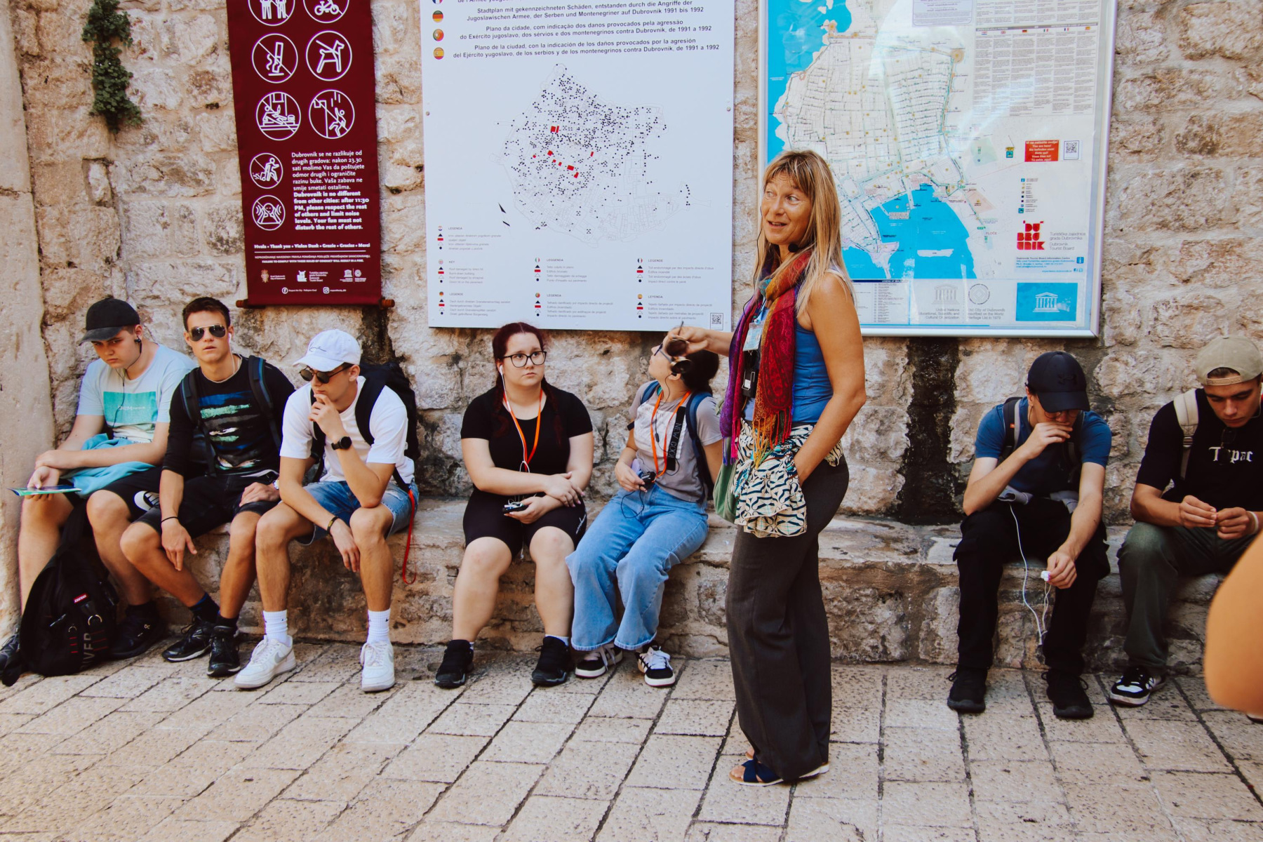Tretji dan smo posvetili ogledu Dubrovnika, njegovi zgodovini, arhitekturi ter bližnjemu otoku Lokrumu. Po zajtrku v hotelu smo se odpeljali do mestnega obzidja, kjer nas je pričakala vodnica in nas popeljala po poteh tega čudovitega hrvaškega mesta. Najprej smo si ogledali Onofrijev vodnjak in katedralo, nato pa se sprehodili skozi staro mestno jedro do jezuitskih stopnic, znanih po prizoru iz serije Igra prestolov. Po tem smo imeli prosti čas, v katerem smo se sprehodili po obzidju in obkrožili mesto. Kasneje smo z ladjico odpluli na otok Lokrum, kjer smo raziskovali tamkajšnjo floro in favno, se kopali ter skakali s klifov. Po preživetem času v vodi smo se z ladjico vrnili v staro pristanišče in se nato vrnili v hotel. Preostanek časa do večerje smo izkoristili za masažo, kopanje in savnanje.