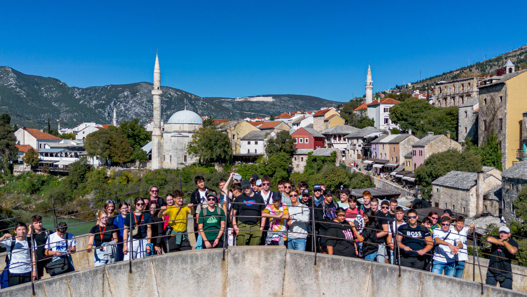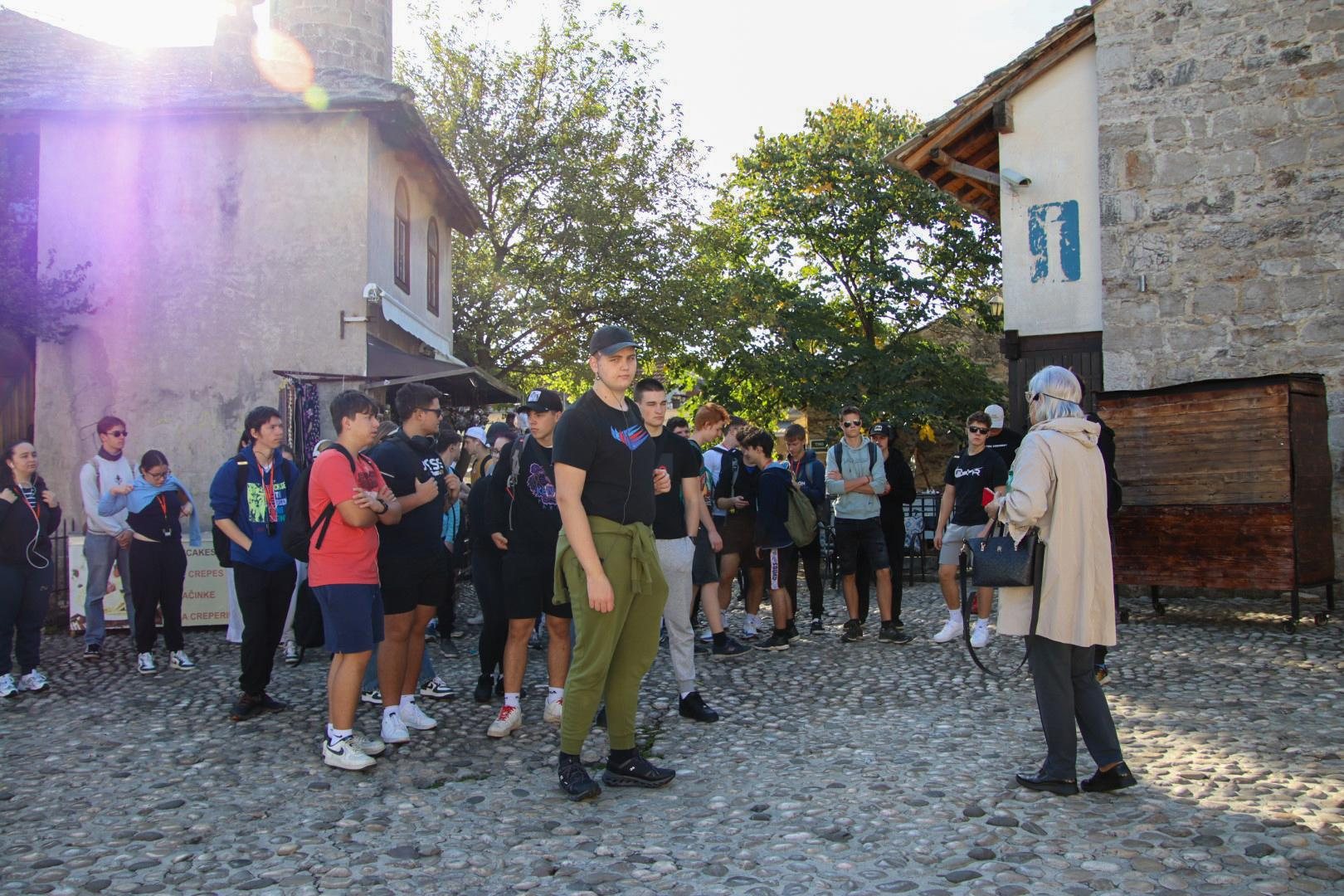 Drugi dan smo se po zajtrku odpravili na pot iz Medžugorja proti Mostarju. V tem znamenitem mestu smo si ogledali tradicionalno turško hišo, kamniti most in mesto s svojo bogato kulturno raznolikostjo. Imeli smo prosti čas za kosilo, med katerim smo lahko poskusili pristne čevapčiče in nakupili spominke vseh oblik in form. Ogled smo zaključili s skupinsko fotografijo na Starem mostu. V popoldanskih urah smo krenili proti mestu Mlini, kjer smo se namestili v hotelu, v katerem bomo ostali naslednje tri dni. Dan smo sklenili z večernim kopanjem v morju in večerjo v hotelu.