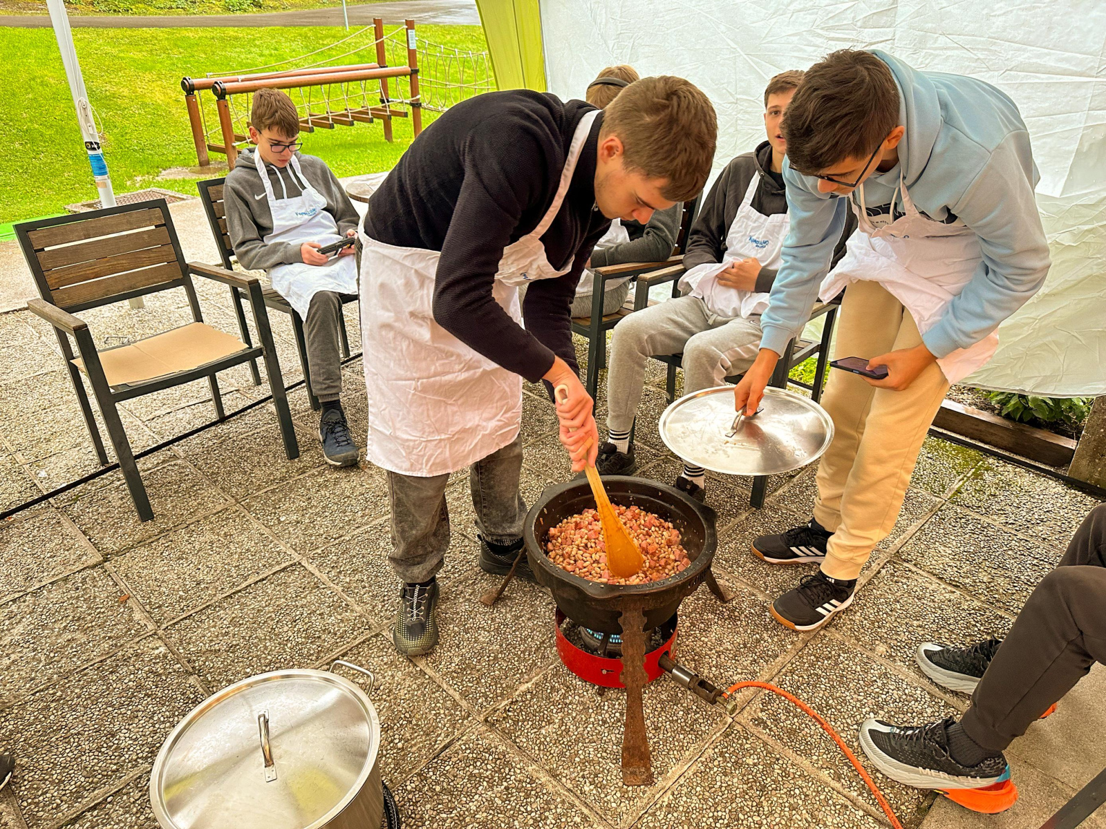 Predzadnji dan so naši drugošolci izvedli 4 delavnice: kolesarjenje, lokostrelstvo, peka potice in kuhanje jote, ki so jo nato pojedli za kosilo. Popoldan so pridobivali veščine orientacije in preživetja v naravi. Zvečer pa so preverili rezultate fizikalne vaje ter igrali športne in družabne igre.